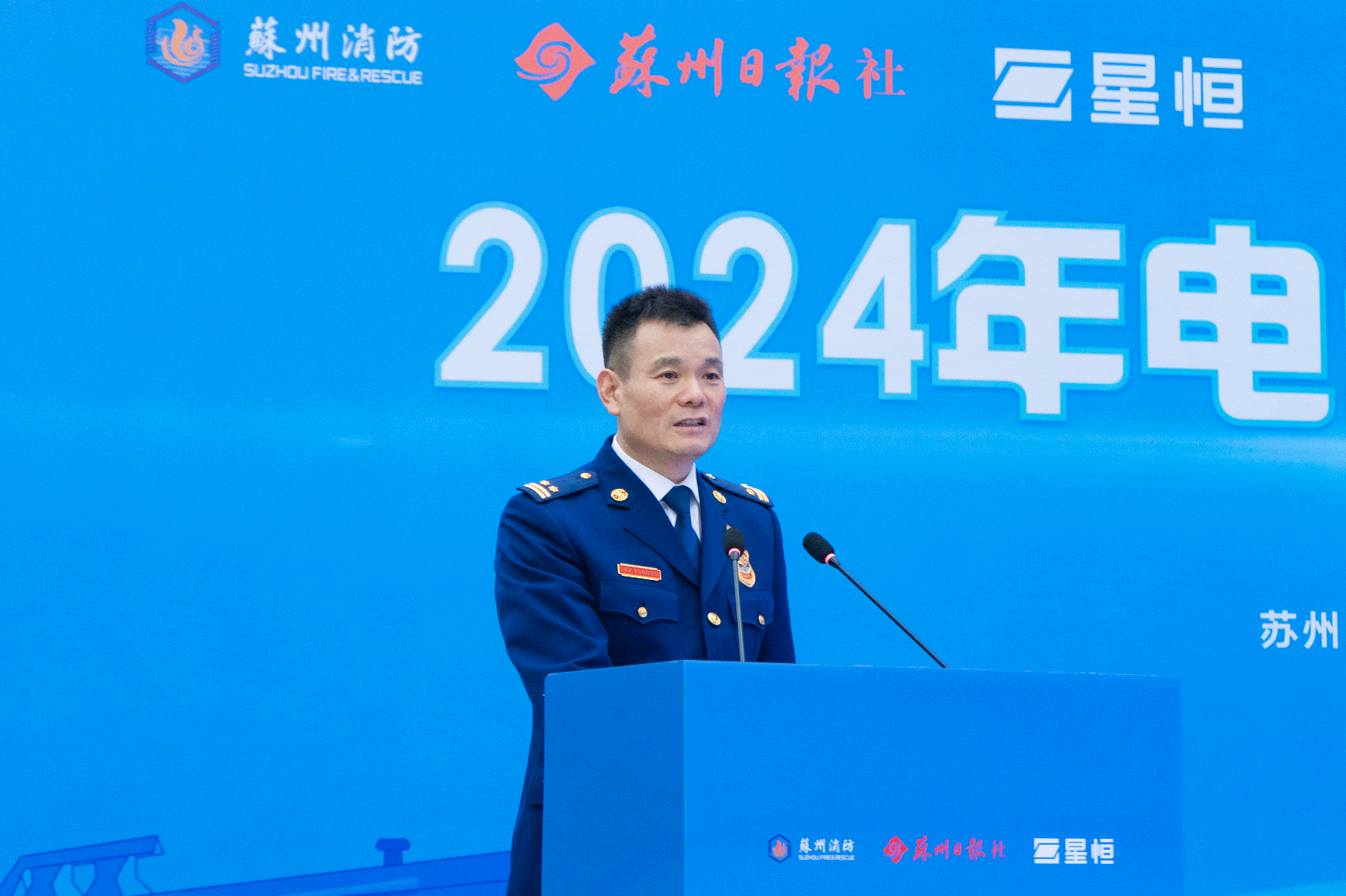 活動現場,蘇州市消防救援局副局長邵波發表講話。他指出,蘇州市開展電動自行車安全隐患全鏈條整治行動以來,形成了各界關注重視、全民參與的濃厚宣傳氛圍。本次活動是紮實推進電動自行車安全警示宣傳教育落地見效的重要一步,期待以此爲契機,多方聯動,爲全市電動自行車消防宣傳工作做出新的貢獻,爲蘇州高質量發展、全市人民安全樂業創造安全和諧的環境。